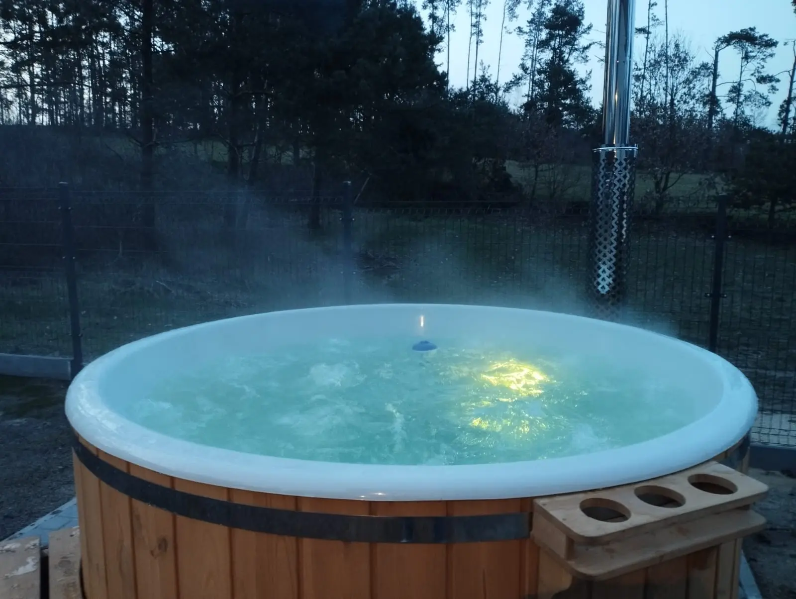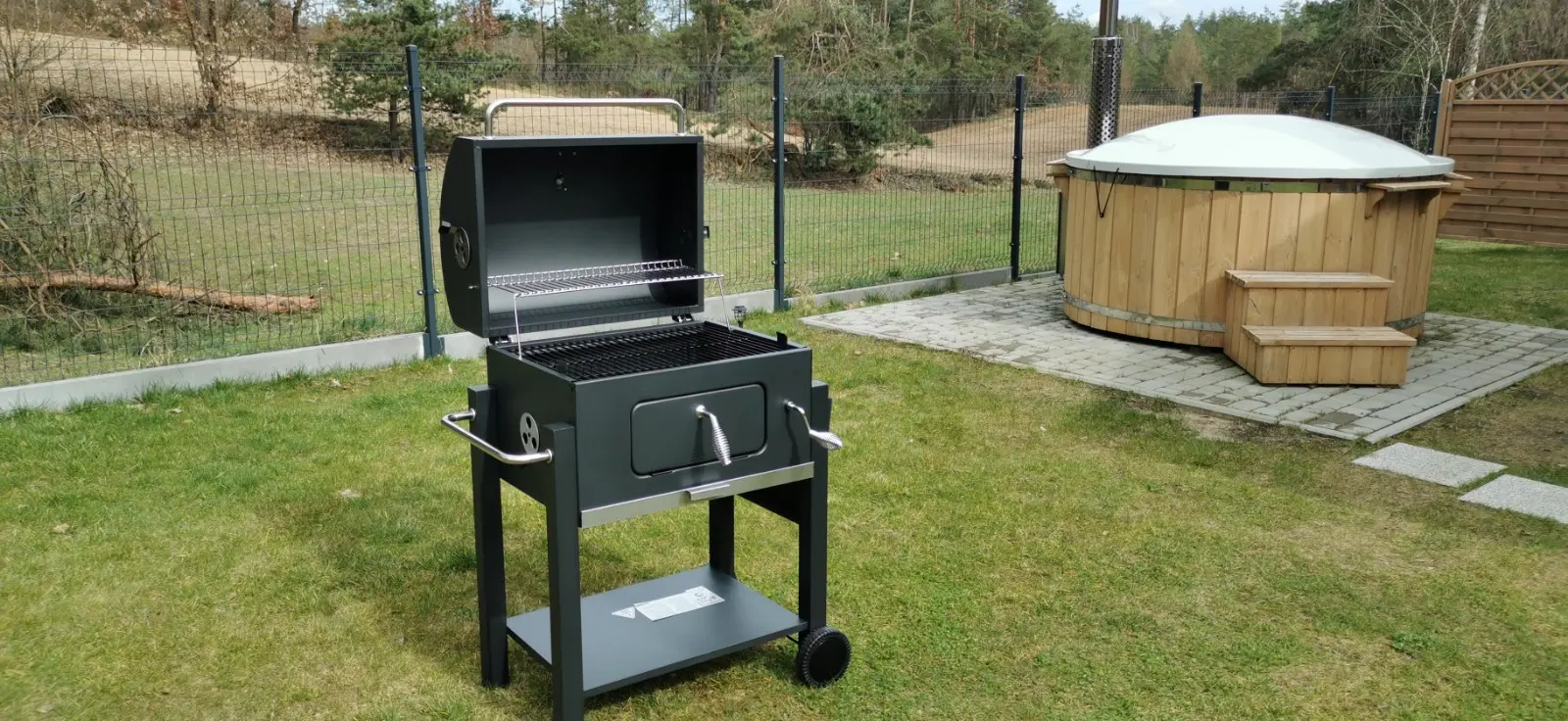 z balią wodną i ogrodem